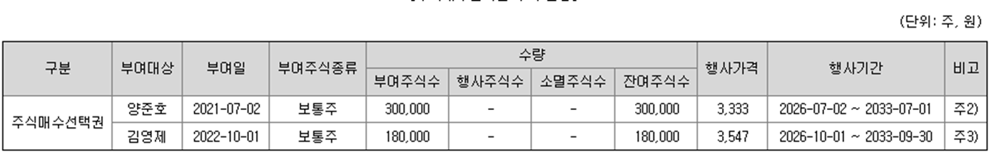 - 임직원 보유한 주식매수선택권은 있지만, 그 외 전환사채, 신주인수권 등의 희석 요인은 없음