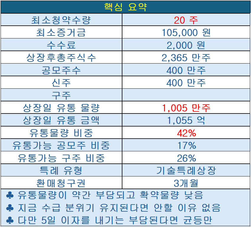 ♣ 최근 공모주 시장의수급 분위기 유지된다면 단점은 모두 극복 가능
