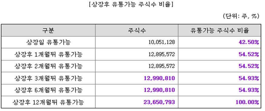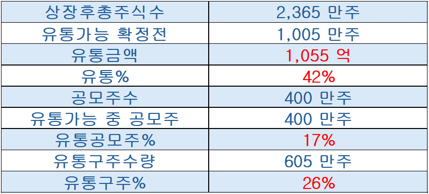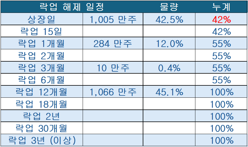 ♣ 시총도 적지 않은 종목인데, 유통물량이 약간 부담되고 확약물량 낮음