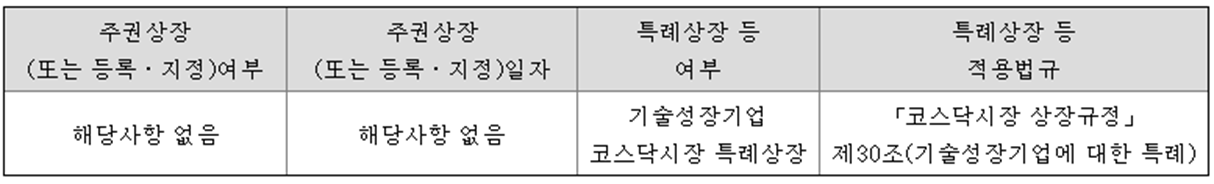 - 특례상장 기업 : 기술특례상장