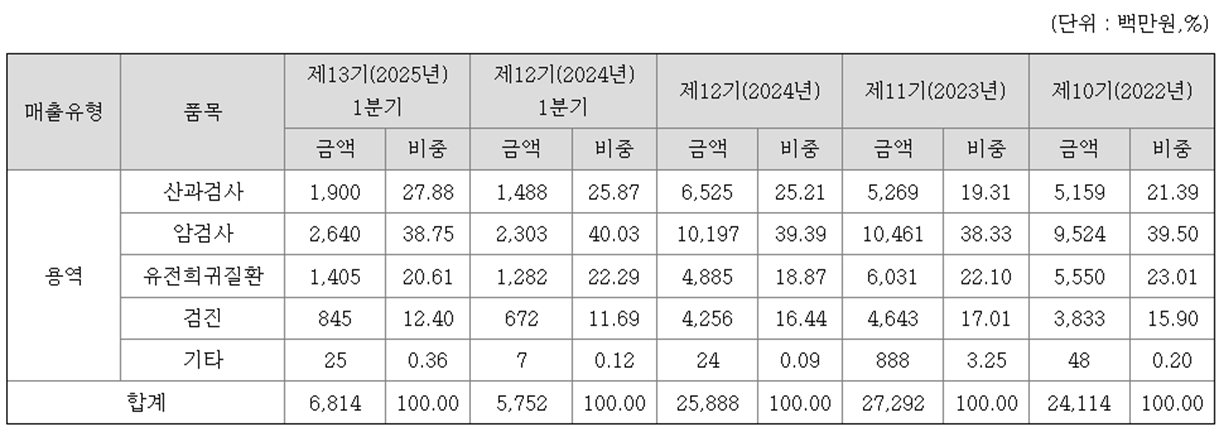 - 주요 업종: 유전체 분석 및 분자진단 서비스