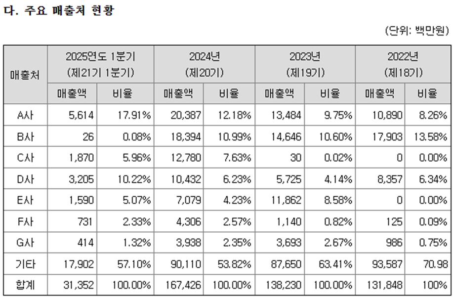 2. 매출현황 - 매출 성장 : 2020년 705억원 → 2024년 1,674억원(4년간 2.4배 증가) - 대만·중국 팹리스 고객 중심, 중국 자회사(INTERHUB TECHNOLOGY CHINA) 통해 중국 시장 진출 - 연간 100~200개 이상 신규 개발 프로젝트 진행 - MEMS 마이크로폰 센서, SWIR 센서 등 신사업 R&D 집중 - 설계 인력 채용 및 공정 장비 투자 확대(향후 3년간 20여명 채용, 40억원 장비투자)