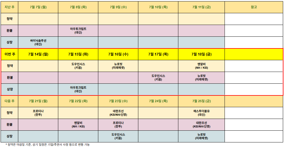 7월 14일 주 공모주 일정