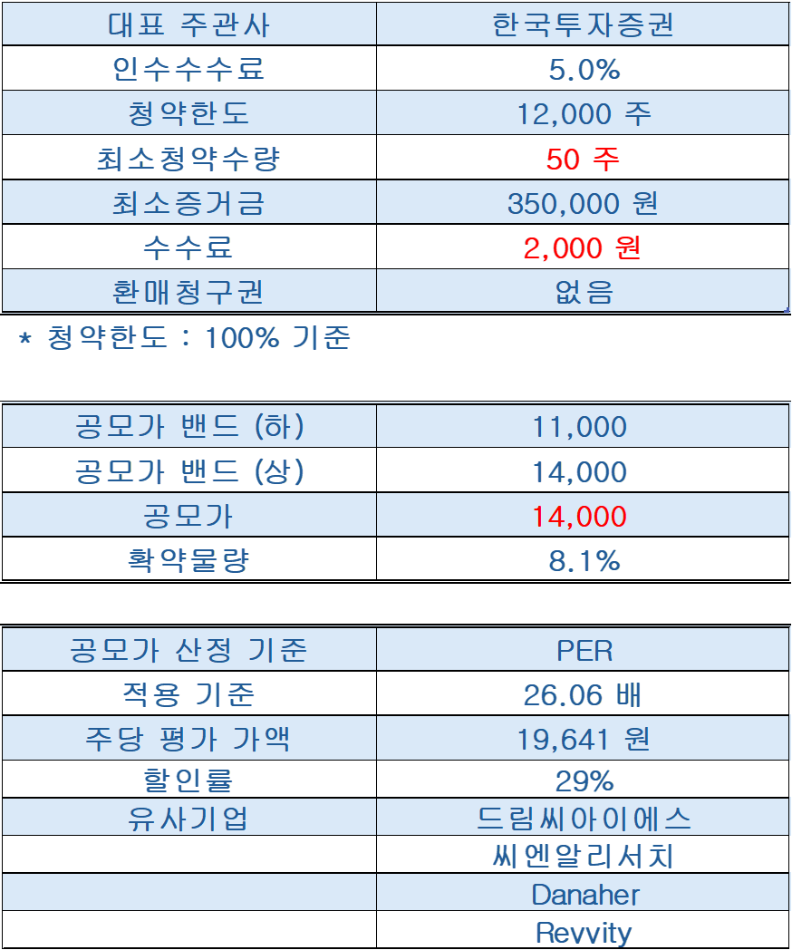 주관사는 한국투자증권이며, 최소 청약은 50주로 증거금은 350,000원입니다.