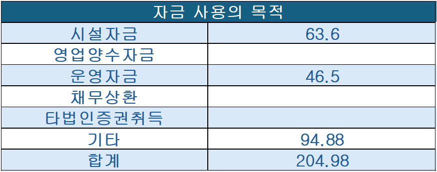 공모를 통해 확보한 자금은 시설자금, 운영자금, 기타 용도로 활용됩니다.