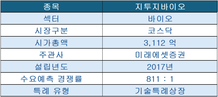 바이오 기업인 지투지바이오의 공모주 상장 정보를 정리했습니다.