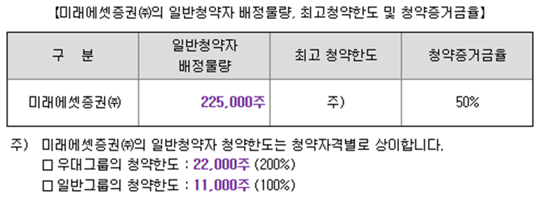 - 청약한도 및 수수료