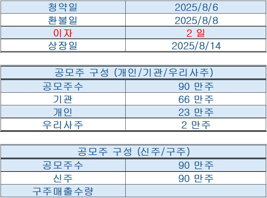 공모주 상장일은 8월 14일(목)입니다.