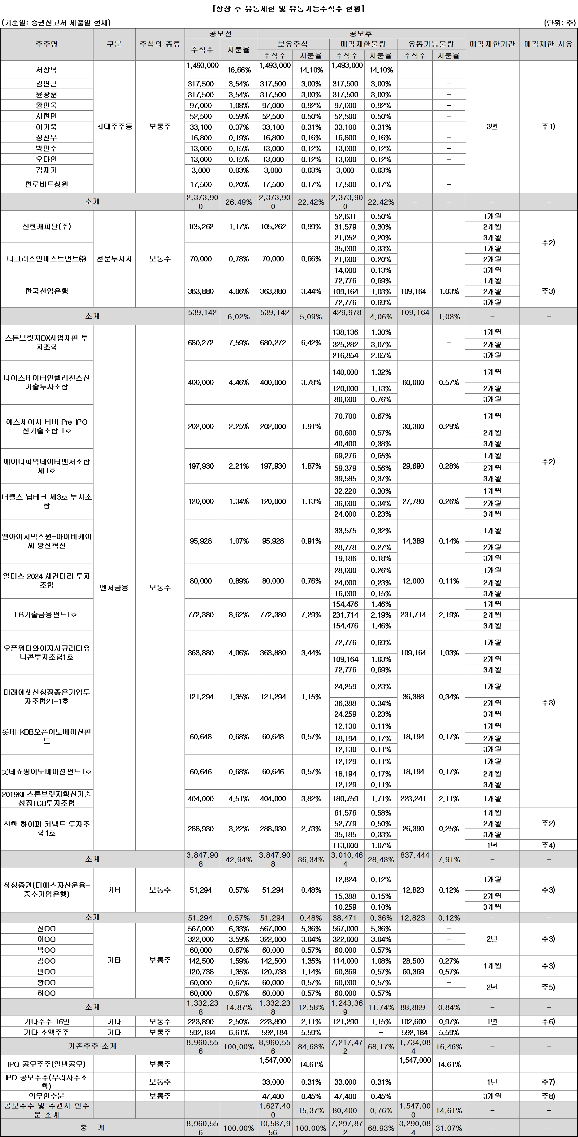 상장 후 1개월 후 약 13% 물량이 락업해제되며, 총 44% 물량이 1개월만에 유통됩니다.