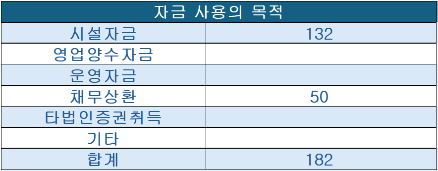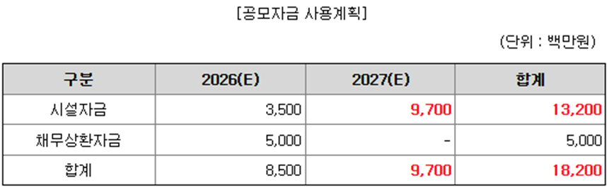 공모를 통해 확보한 자금은 시설자금, 채무상환 용도로 활용됩니다.