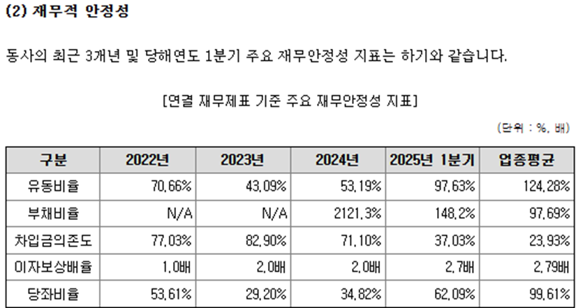 - 최근 3년 매출: 2022년 1,010억 → 2023년 1,219억 → 2024년 1,444억 원 - 2025년 1분기 매출: 406억 원, 2분기 누계 770억 원, 7월 누계 889억 원 - 매출 성장률: 최근 5년 CAGR 20%대, 2024년 기준 영업이익 123억 원 - 주력: 친환경·자율주행부품, 로봇부품, 글로벌 완성차사 직납(2025년 확대 예상) - 수출비중 및 지역: 베트남 등 해외법인 중심, 글로벌 현지 공급망 확대 - 부채비율: 2024년 53%(업계평균 준수) - R&D 현황: 특허 60여건, 사업별 설계·분석·제품 개발 연구 강화