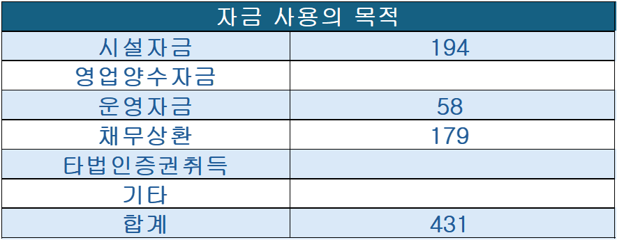 공모를 통해 확보한 자금은 시설자금, 운영자금, 채무상환 용도로 활용됩니다.