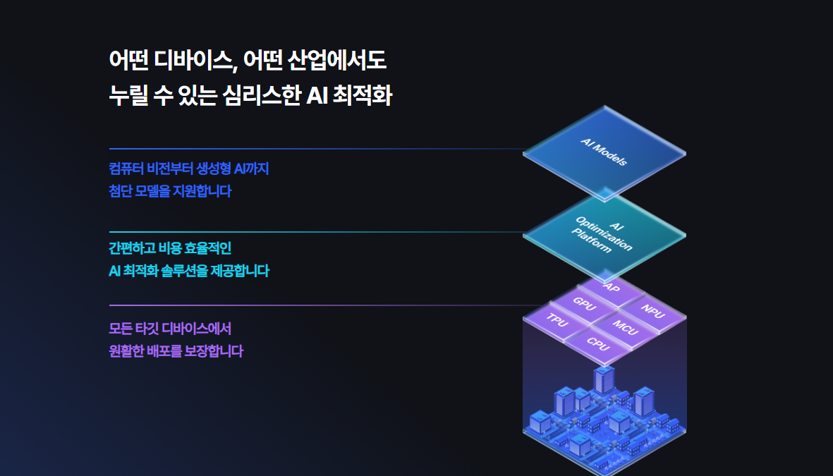 이 회사는 AI 경량화 기술을 보유한 회사로, AI 모델을 경량화·최적화하는 소프트웨어 플랫폼 ‘넷츠프레소(NetsPresso)’**를 자체 개발했습니다. 이 기술은 기능이 제한적인 기기(스마트폰, IoT 기기 등)에서 고성능 AI가 구동될 수 있도록 모델을 효율적으로 압축하는 기술입니다. 주요 고객은 삼성전자, 엔비디아, ARM 등 글로벌 반도체 기업입니다.