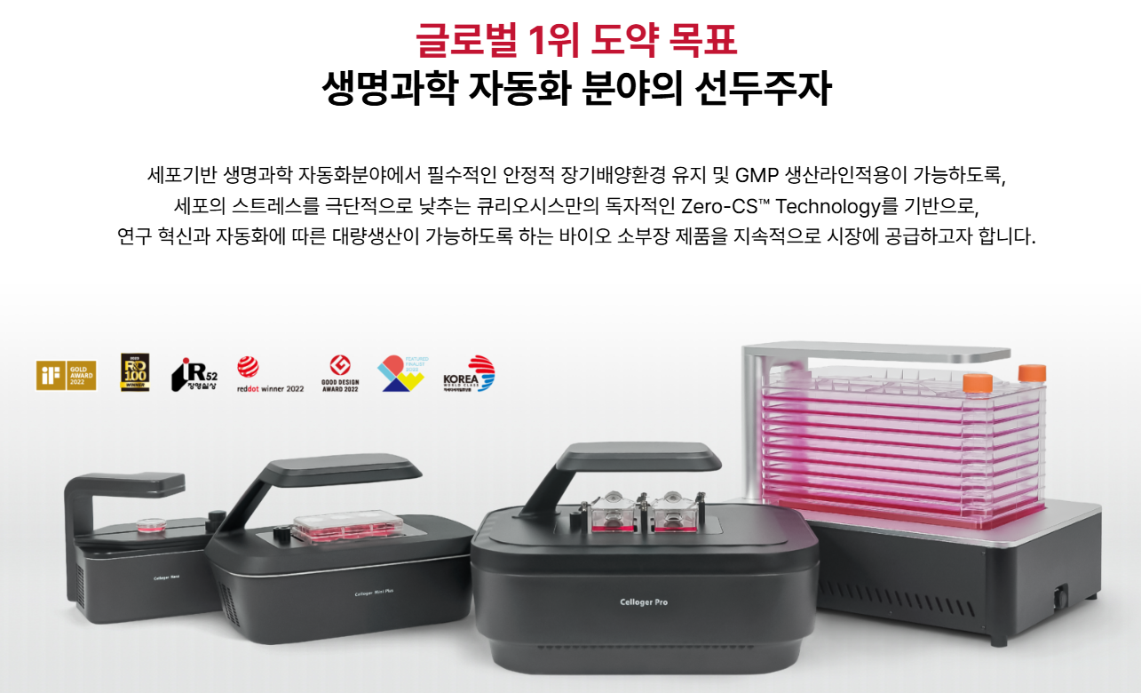 바이오 연구 장비 관련 실험실 자동화 솔루션을 제공하는 기업입니다. 대표 제품인 '셀로거 프로(Celloger® Pro)'는 세계 최초로 선보인 4세대 라이브 셀 이미징 시스템으로, 인큐베이터 내부의 장기 세포 배양 과정을 실시간으로 정밀하게 관찰 및 분석할 수 있는 차별화된 기능을 제공합니다.