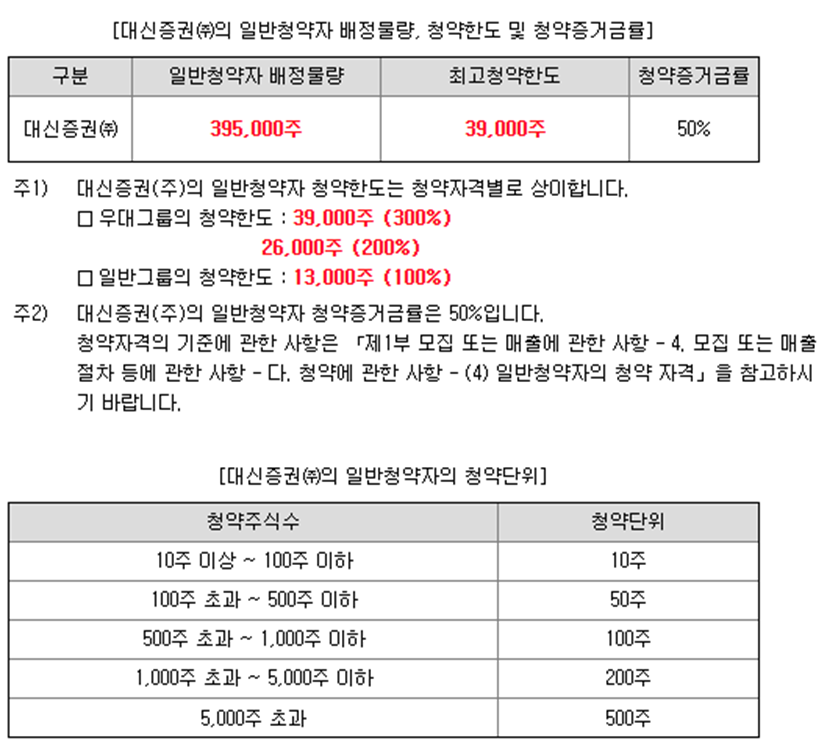 주관사는 대신증권이며, 최소 청약은 10주로 증거금은 66,000원입니다.
