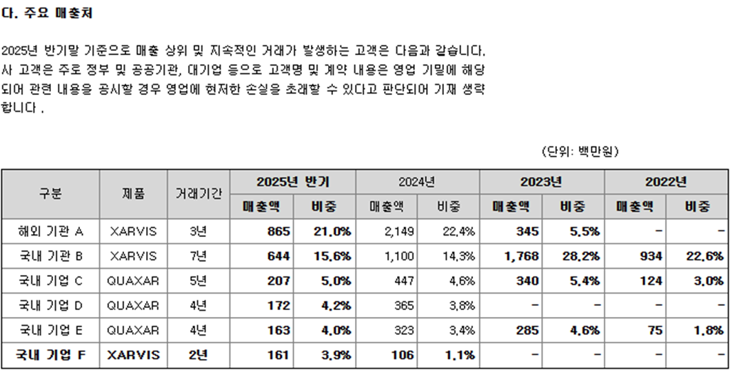 매출처: 민간(55~60%), 공공기관(40~45%), 상위 5개 매출처 비중 약 50%