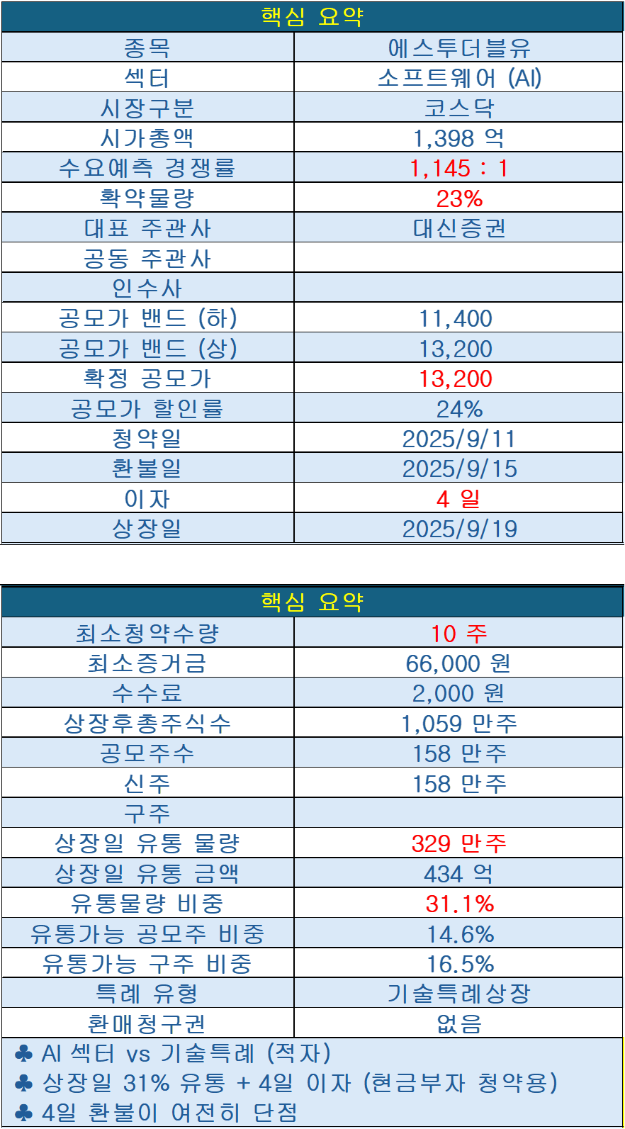 9월 11일 (목) 16시 청약 마감이며, 두번째 상장에서도 4일 이자 부담이 있습니다.