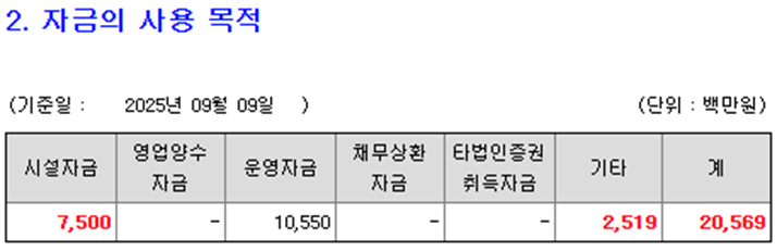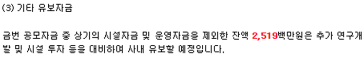 공모를 통해 확보한 자금은 시설자금, 운영자금, 기타 용도로 활용됩니다.
