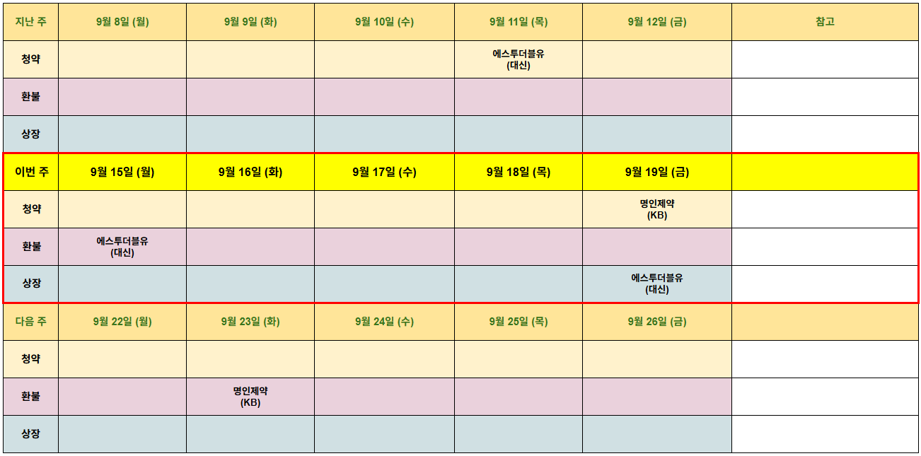 | 9월 22일 주 공모주 일정 (0) | 2025.09.20 |