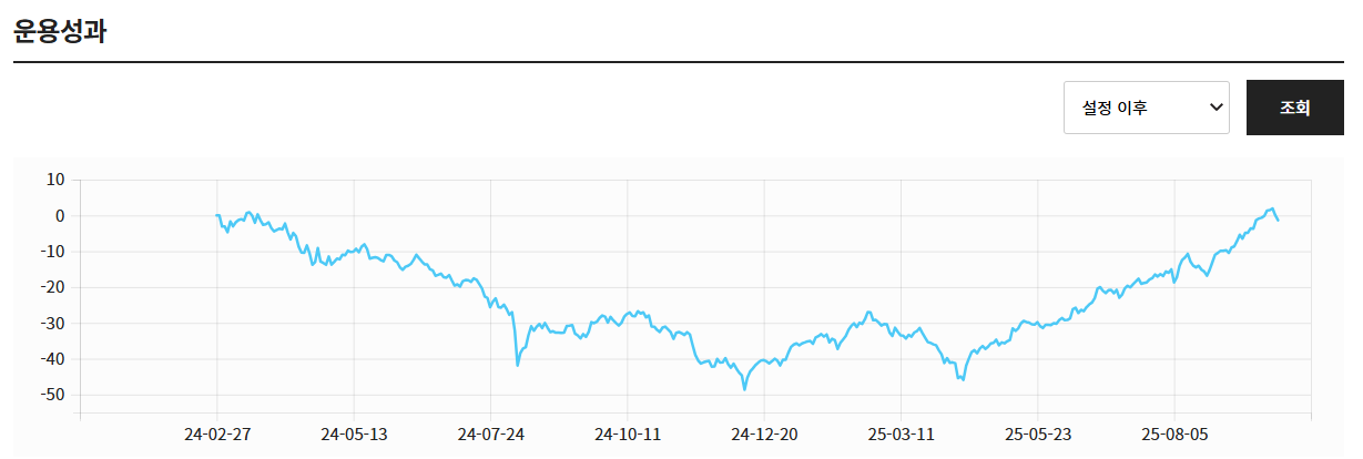 2024.2.27일에 상장한 액티브 ETF인데, 상장후 공모주 시장과 함께 하락했다가, 최근 전고점을 뚫고는 맥없이 조정 중입니다.