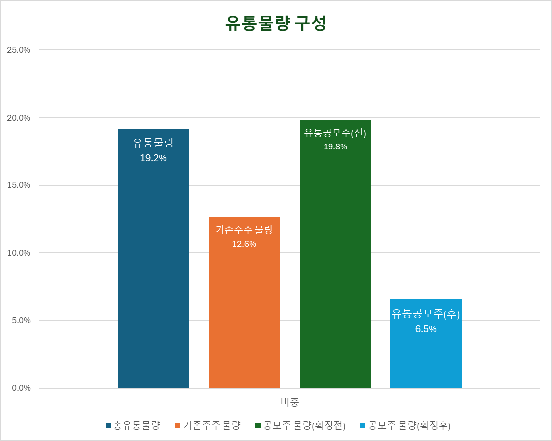| 유통물량 (확정후) | 170 만주 | 250 억 | 19% |