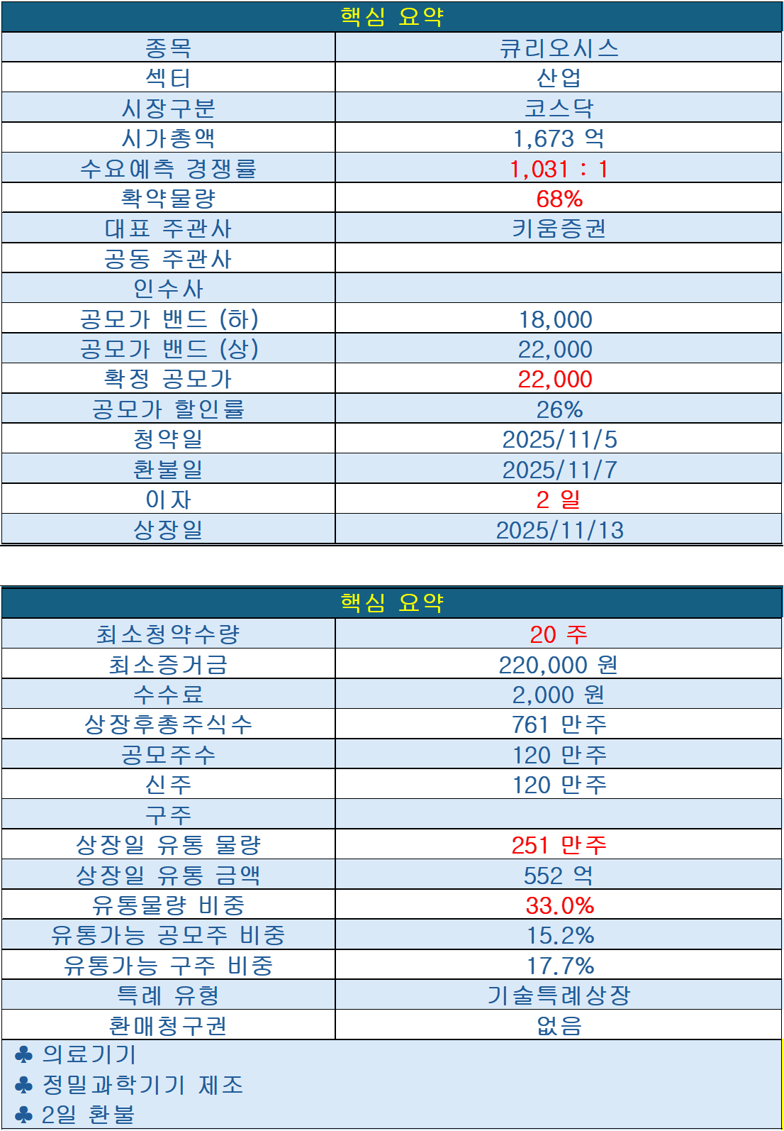 총 상장예정주 761만주 중 33%인 251만주가 상장일 유통되며, 금액으로는 552억이 소화되어야 합니다.