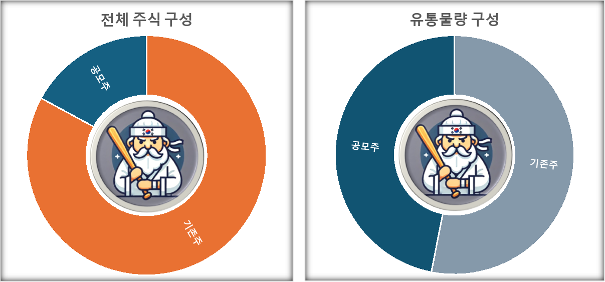 상장 후 1개월 후 약 11% 물량이 추가로 락업해제되며, 총 48% 물량이 1개월만에 유통되는 구조입니다.