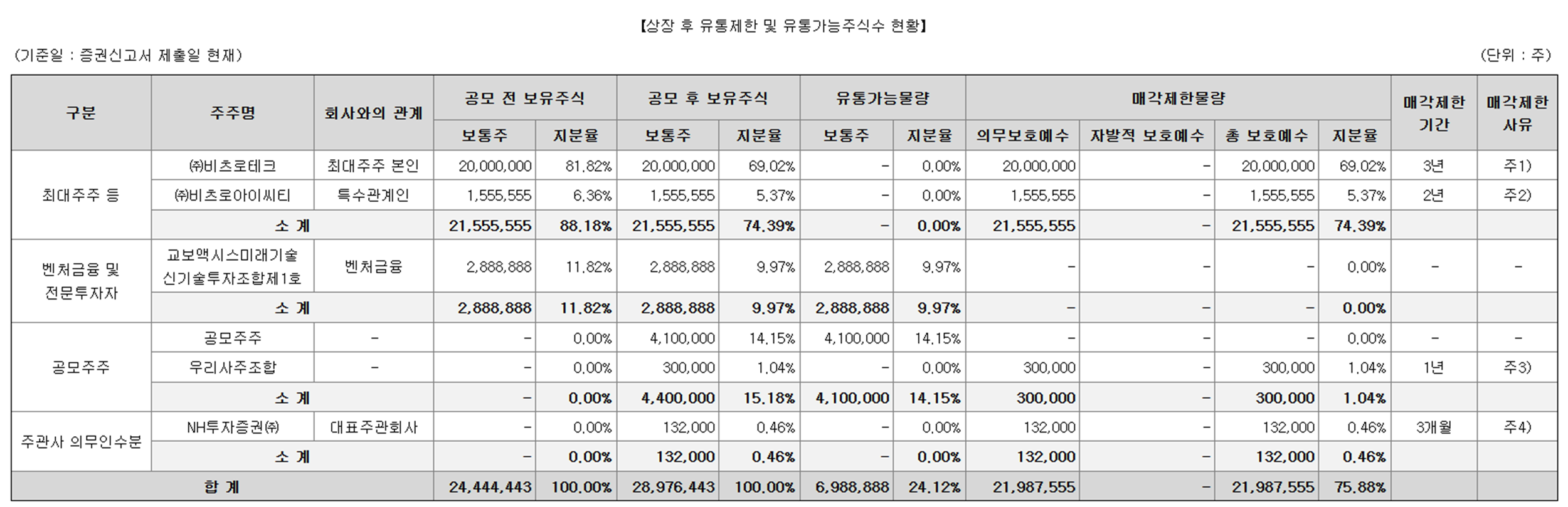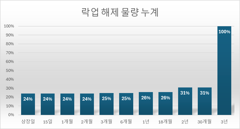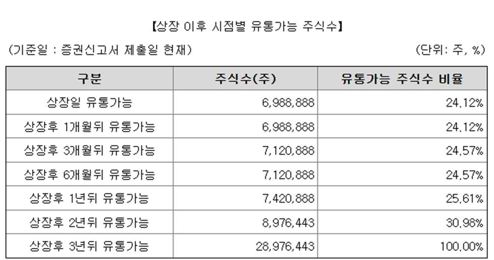 특이하게 단기간 락업해제 계획은 없고, 3년 후에 모든 물량이 풀립니다.
