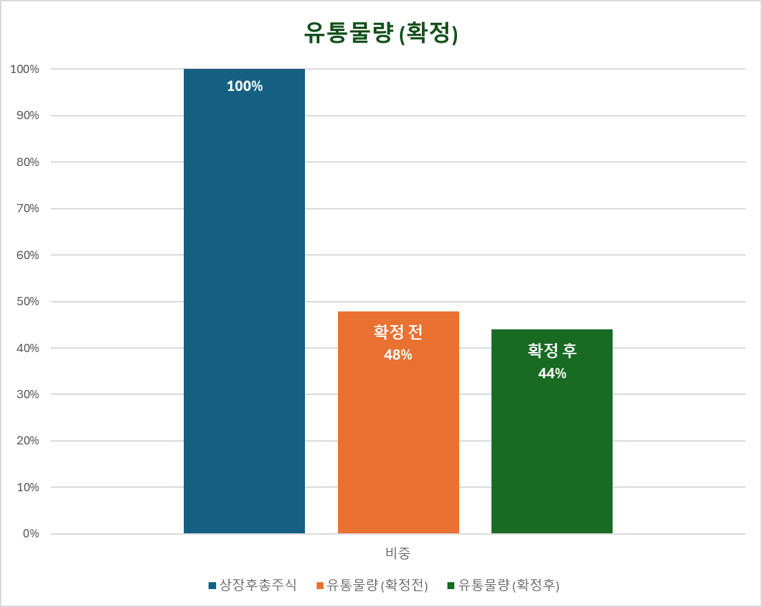 유통물량 약 44%는 기존주주 25.8%와 공모주주 18.2%로 구성됩니다