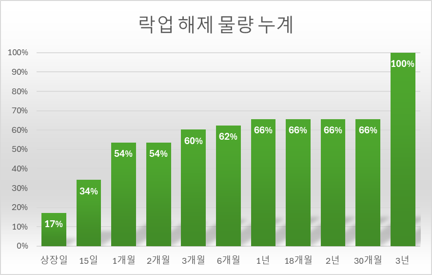 1개월 후엔 약36% 물량이 추가로 풀립니다