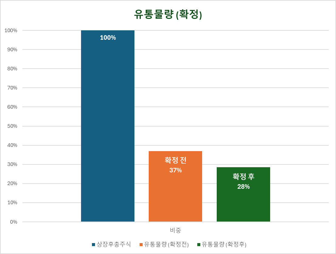 | 유통물량 (확정전) | 1,246 만주 | 2,990 억 | 37% |