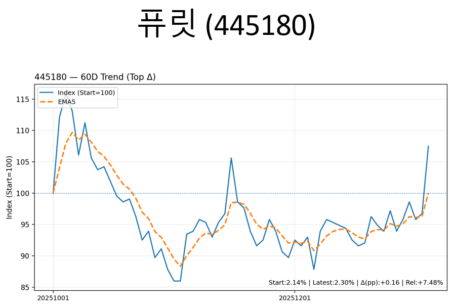 퓨릿도 강한 모습을 보여주며, 비중도 증가 중입니다.