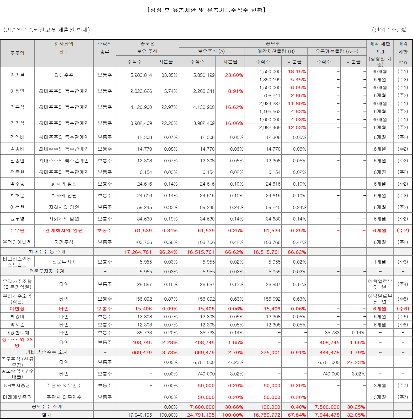 | 락업 30개월 | 992 만주 | 40.0% | 100% | |