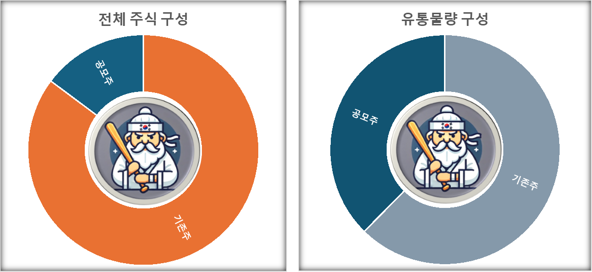 유통물량 36.4%는 공모주 11.8%와 구주 24.5%로 구성됩니다.