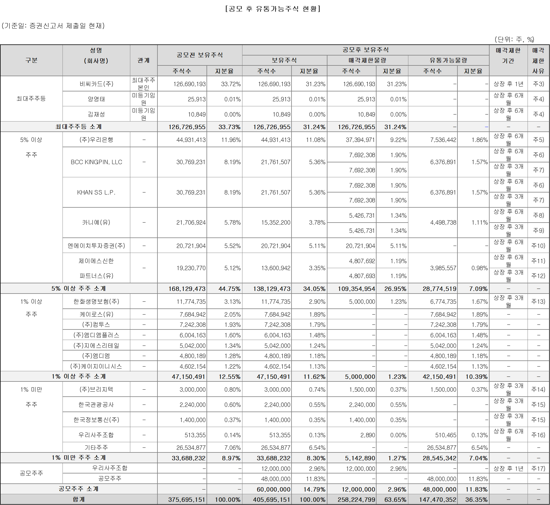 | 상장후총주식수 | 40,570 만주 | |||