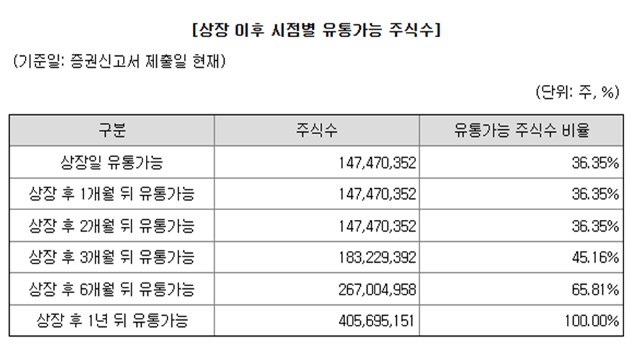 총 상장예정주 40,570만주 중 36%인 14,747만주가 상장일 유통되며, 금액으로는 12,240억이 소화되어야 합니다.
