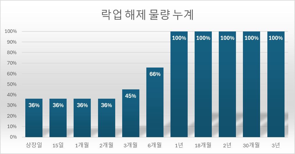| 락업 해제 일정 | 물량 | 누계 | ||