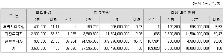 - 비례청약 배정 : 0.0034주 (292 대 1)
