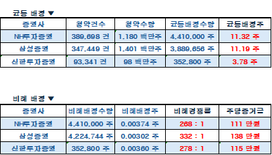 증권사별로 균등/비례 배정을 진행하기 때문에, 배정 수량이 차이가 발생되며, 가끔 큰 차이가 나기도 합니다.