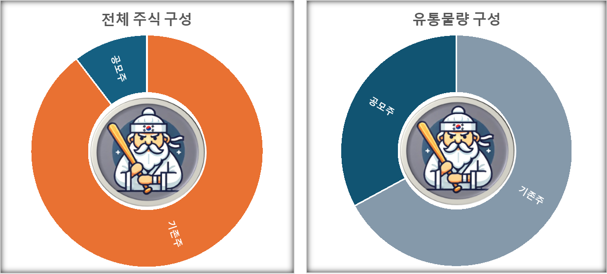 유통물량 31.6%는 공모주 10.4%와 구주 21.2%로 구성됩니다.