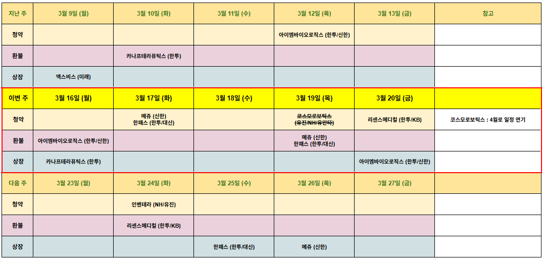 3월 16일 주 공모주 일정
