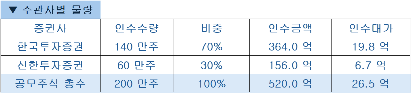 공모가는 26,000원이고, 최소 청약은 20주, 최소 증거금 260,000원입니다