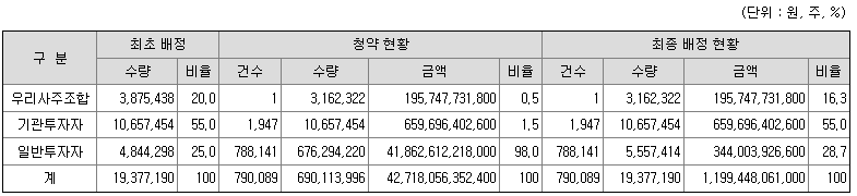 - 비례청약 배정 : 0.0041주 (243 대 1)