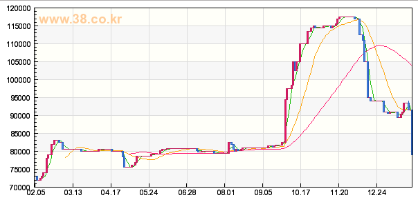 장외가가 오늘 91,500원에서 79,000원으로 14%정도 급락했습니다.