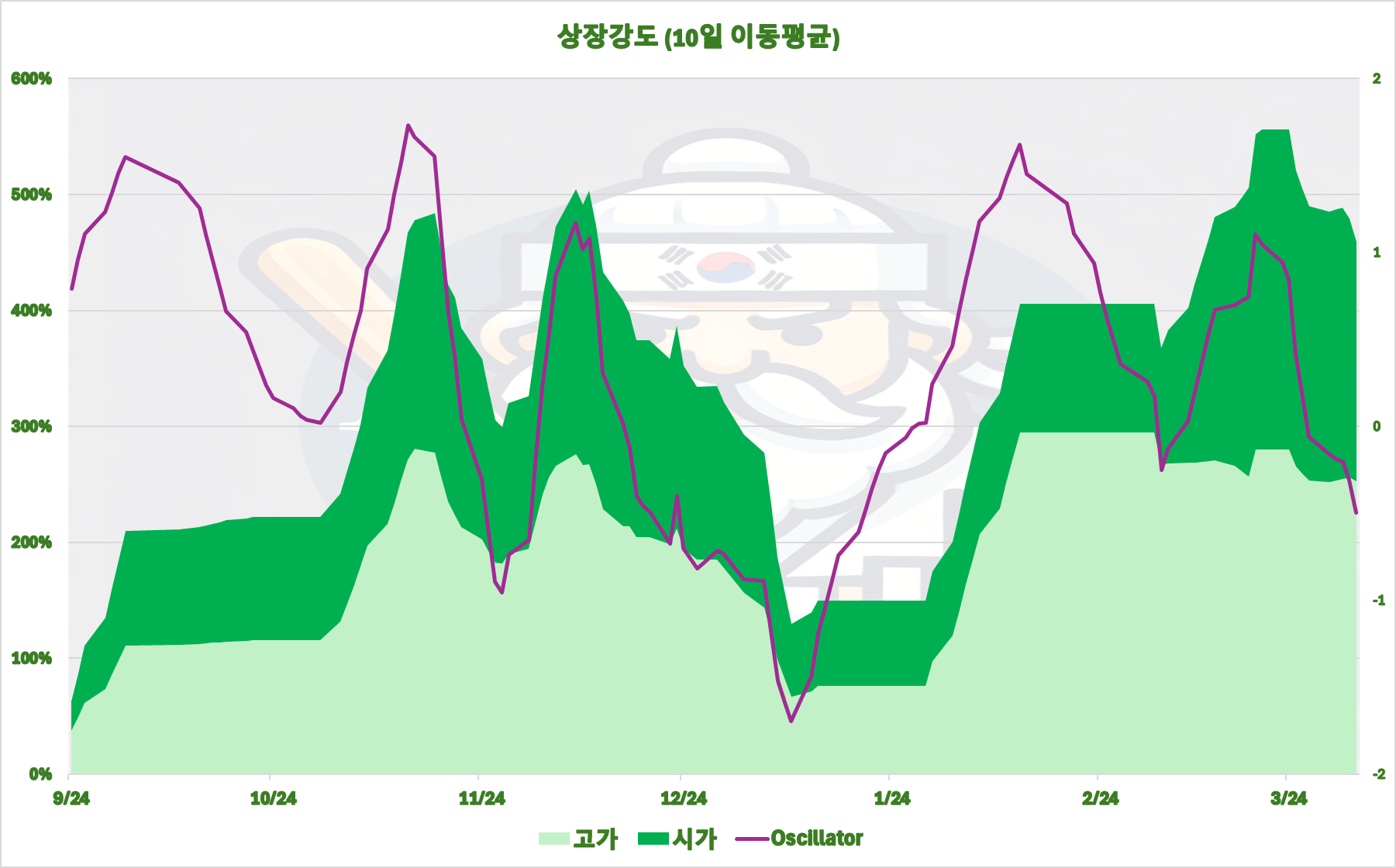 지지난 주 최고가를 기록하고 많이 내려왔지만, 상승세는 여전히 유지되고 있습니다.