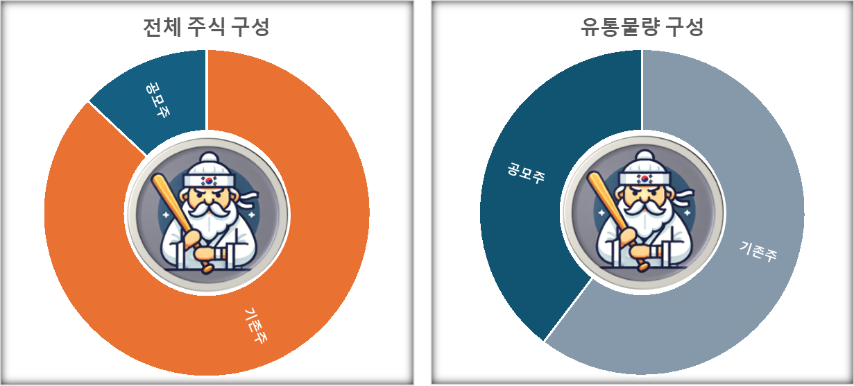 다만 시총이 작은 편은 아니고, 유통물량은 펌범하지만 공모주(40%) 보다 기존주(60%)가 더 많은 것은 주의해야겠습니다.