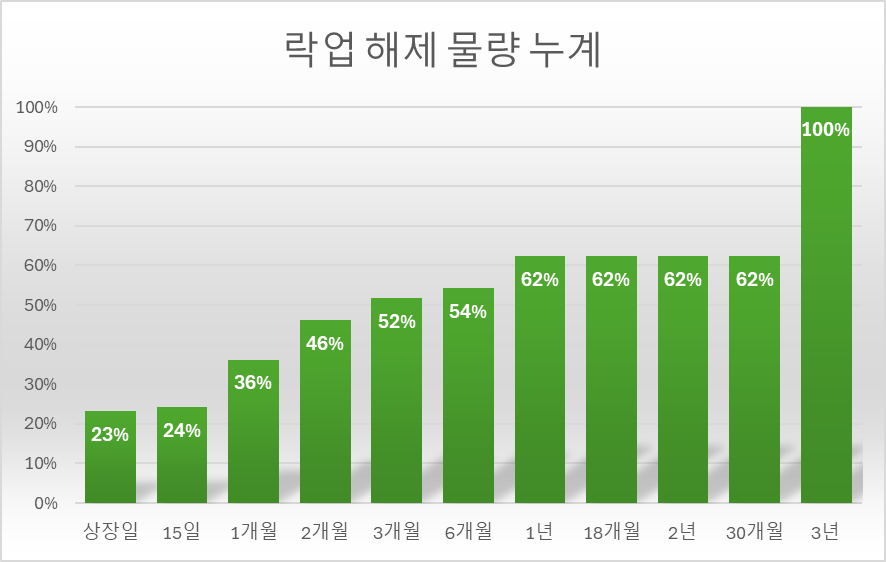 | 락업 해제 일정 | 비중 | 누계 | ||