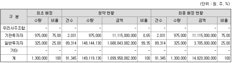 - 비례청약 배정 : 0.0011주 (912 대 1)