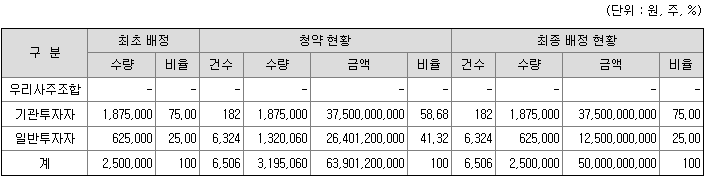 - 비례청약 배정 : 0.2367주 (4 대 1)