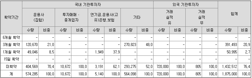 올해 공모주 중엔 그나마 높은 확약률이지만, 유통가능 물량 중 구주물량이 공모주의 거의 두 배 입니다.